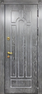 Квартирная входная дверь с серыми панелями МДФ с патиной выполнена с учётом современных требований к дизайну и безопасности. МДФ-панели позволяют добиться высокого уровня тепло- и шумоизоляции. Формируют целостный образ входной группы. Оформление подойдет как для частного дома, так и для загородного коттеджа.